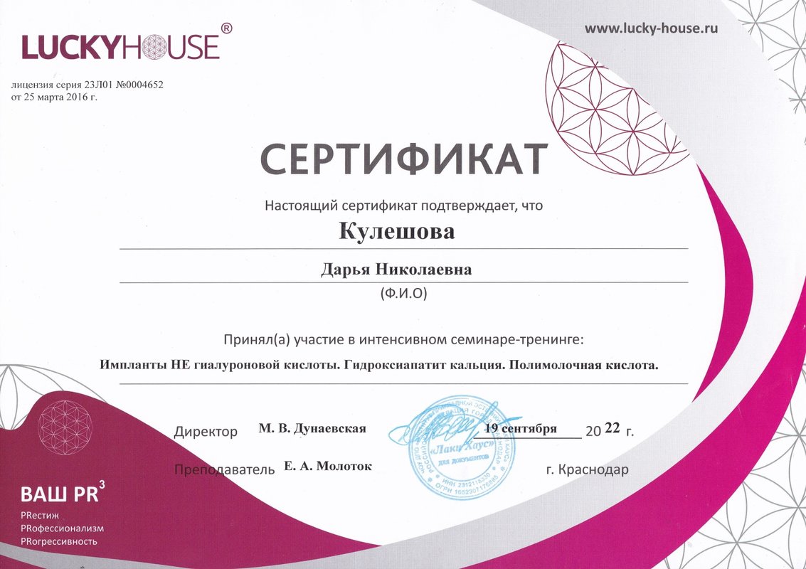 Вам все еще кажется, будто салоны красоты - причуда и бесполезная трата денег? Посетите студию красоты Дарьи Кулешовой - и вы поймете, что это не так! Высокий профессионализм наших косметологов не только обеспечит вам уровень ухода, которого невозможно добиться в домашних условиях, но и даст возможность дополнительно раскрыться как личности и преобразиться, найдя себя в новом стиле. У нас вы отдохнете душой и телом, испытав тот роскошный уровень заботы, который никого не оставит равнодушным!